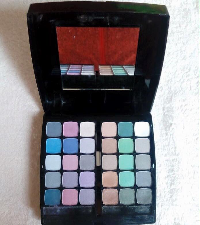 Lo primero que se observa son sombras de ojos (son bastantes y muy bonitas) el problema está en que no pigmentan nada, tengo que pasarla como 4 veces para que tome algo de color y en mi piel no duraron ni 10 minutos. También algo que me paso con las sombras es que con la segunda pasada al sacar el color todo voló (puuum), sí así como les dije el polvo voló por todos lados y el kit quedo todo manchado enseguida (como podrán notar en las fotos a continuación,, perdón no fue culpa mía que se vea tan sucio). El kit o la tapa se ensucia y mancha muy rápido como ven en la primera foto y yo soy muy cuidadosa con estas cosas, trate de limpiarla con alcohol gel, soda, liquido, limpia vidrios, agua, etc. Nada pero nada funciona y cada vez está peor (claramente también puede ser porque lo he intentado limpiar con muchas cosas, pero ustedes entenderán jaja)